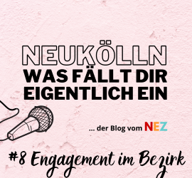 Willkommen zurück und hallo zu einer neuen Folge unseres NEZ-Blogs „Neukölln, was fällt Dir eigentlich ein?!“ In dieser Episode stellen wir euch das Neuköllner EngagementZentrum vor. Wir zeigen euch unsere Räumlichkeiten und geben einen Einblick in das Team. Das NEZ ist seit dem 22. März 2018 die bezirkliche Freiwilligenagentur in Neukölln. Wir beraten ehrenamtlich Interessierte zu passgenauen Einsatzmöglichkeiten in Neukölln, begleiten Organisationen zum Thema Freiwilligenmanagement, vernetzen engagierte Akteure im Bezirk und unterstützen Unternehmen bei ihrem Engagement in Neukölln. Wenn euch die Episode gefällt, ihr Wünsche, Anregungen oder Kritik habt, dann lasst gerne einen Kommentar und ein Like da – wir freuen uns auf Euer Feedback! Wenn Ihr das Neuköllner EngagementZentrum näher kennenlernen möchtet, schaut gern auch auf unserem Instagram-Kanal oder auf unserer Facebook-Seite vorbei. Und jetzt viel Spaß mit dem Video: