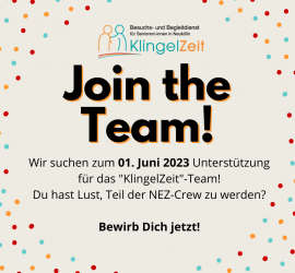 „KlingelZeit“ in der rbb Abendschau Letzte Woche wurde unser Besuchs- und Begleitprojekt „KlingelZeit“ in der rbb Abendschau vorgestellt! In dem Beitrag werden Timo und Ingrid bei einem ihrer regelmäßigen Treffen begleitet und interviewt. Sie sind ein tolles „KlingelZeit“-Tandem der ersten Stunde! Das Video findet Ihr hier ab Minute 24. Schaut Euch den wirklich gelungenen Beitrag unbedingt an! Danke an den rbb für den Bericht und herzlichen Dank auch an Timo und Ingrid für Eure Bereitschaft, mitzumachen. Seid Ihr am Projekt „KlingelZeit“ interessiert? Dann meldet Euch bei uns unter 0 30 325 056 84 oder per E-Mail: klingelzeit@nez-neukoelln. Das Projekt „KlingelZeit“ wird durch das Programm „Freiwilliges Engagement In Nachbarschaften“ sowie vom Bezirksamt Neukölln gefördert und durch das NEZ durchgeführt.